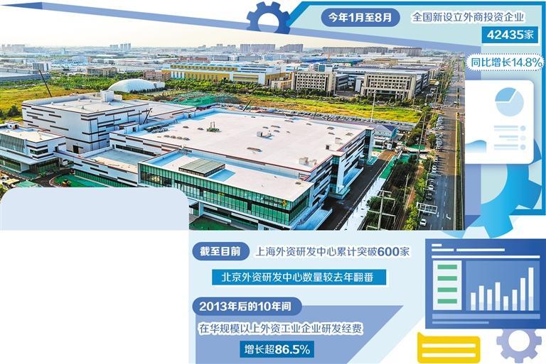 商务部研究院发布的《跨国公司在中国》报告提出,2013年后的10年间,在华规模以上外资工业企业研发经费增长超过86.5%。数据显示,截至目前,上海外资研发中心累计突破600家,北京外资研发中心数量较去年翻番。