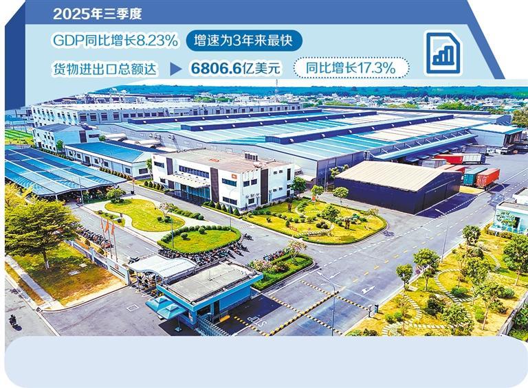 越南统计总局近日发布的数据显示,2025年三季度越南国内生产总值(GDP)同比增长8.23%,前三季度累计增长7.85%,增速高于预期且达到3年以来最快水平。在复杂多变的全球经济环境下,越南经济展现出韧性和活力。
