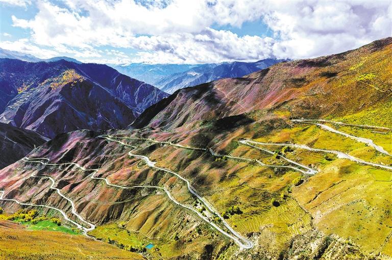 10月12日,位于昌都市八宿县的“怒江72拐”风景壮美。“怒江72拐”是318川藏线上一段艰险与美景并存的山路。