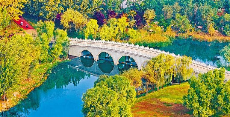 10月25日,山西省临汾市汾河文化生态景区风景如画。近年来,当地通过建设城市公园,绿化美化城市空间,实现开门见绿、推窗见景。