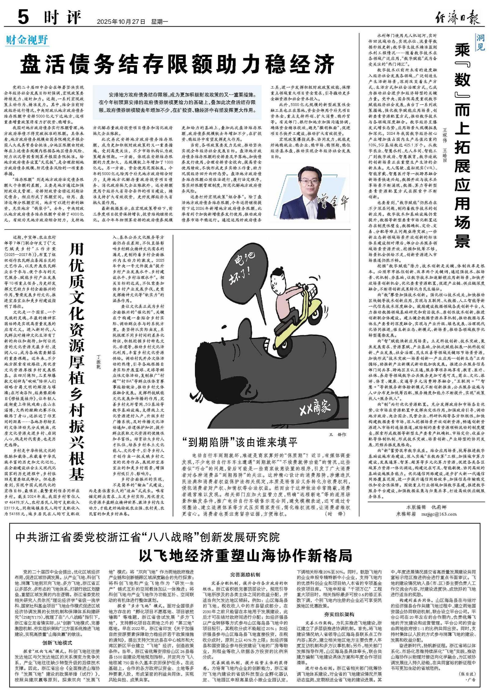 党的二十届四中全会提出,优化区域经济布局,促进区域协调发展。从产业飞地、科创飞地、消薄飞地到双向飞地、多方飞地,浙江省正以多层次、多形态的飞地体系,打破行政区划壁垒,重塑区域发展的内在逻辑。浙江省委党校相关研究人员依托“理论经济学”省级一流学科、国家社科基金项目“飞地合作模式促进区域经济协调发展的长效机制和保障体系构建研究”(25BJY173),梳理了在“八八战略”指引下,浙江省立足省情实际,从“创新飞地模式、完善激励机制、夯实组织架构”三方面系统推进飞地建设,实现高质量“山海共赢”的做法。
