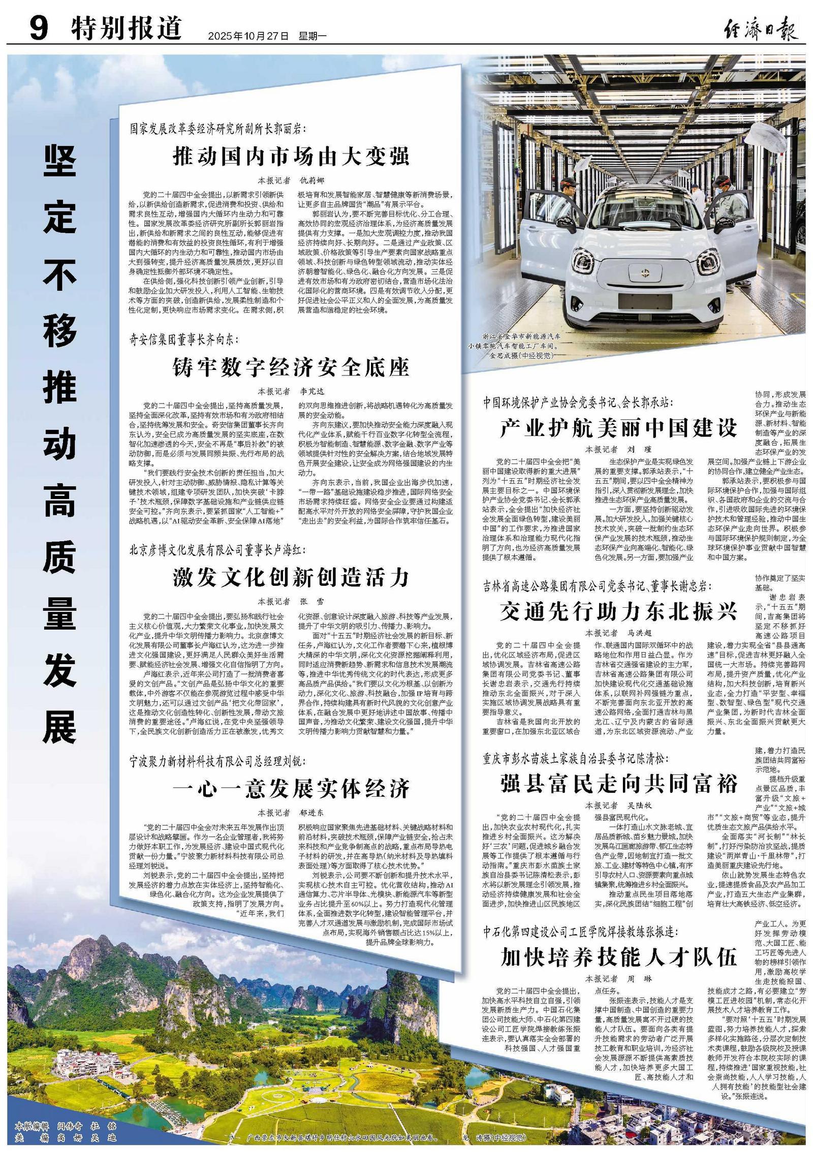 党的二十届四中全会提出,优化区域经济布局,促进区域协调发展。吉林省高速公路集团有限公司党委书记、董事长谢忠岩表示,交通先行持续推动东北全面振兴,对于深入实施区域协调发展战略具有重要指导意义。