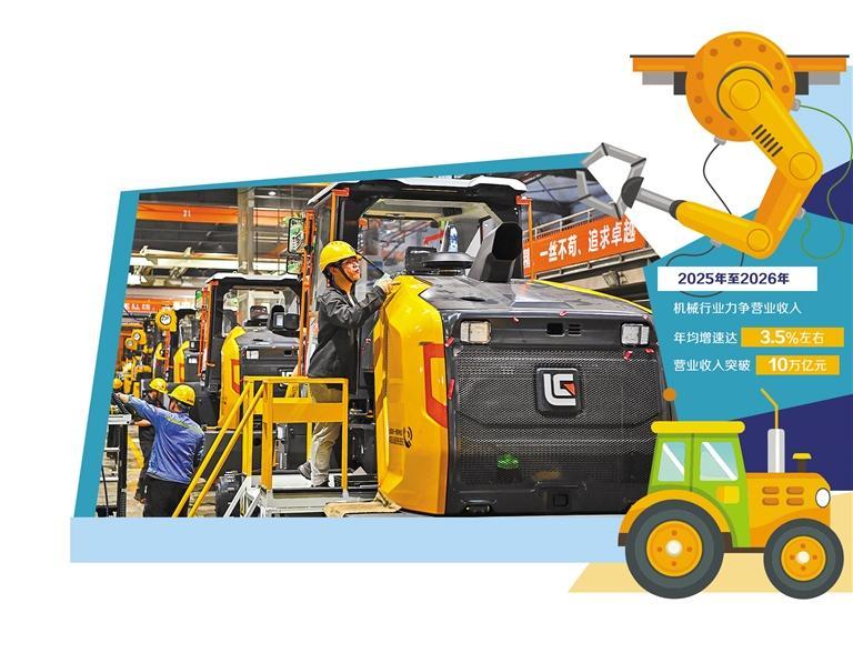 《方案》提出,2025年至2026年,机械行业运行保持平稳向好态势,重点产业链供应链韧性和安全水平持续提升,发展质量效益迈上新台阶,力争营业收入年均增速达到3.5%左右,营业收入突破10万亿元。中国机械工业联合会相关负责人表示,《方案》的目标设定,体现了规模与质量并重的系统性思维,强调供给和需求两侧协同发力。