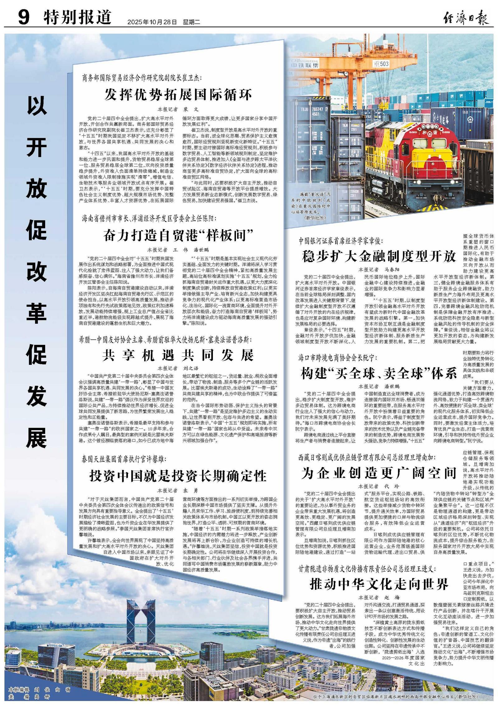 党的二十届四中全会提出,扩大高水平对外开放,开创合作共赢新局面。商务部国际贸易经济合作研究院副院长崔卫杰表示,这充分彰显了“十五五”时期我国坚定不移扩大高水平对外开放,与世界各国共享机遇、共同发展的决心和意志。