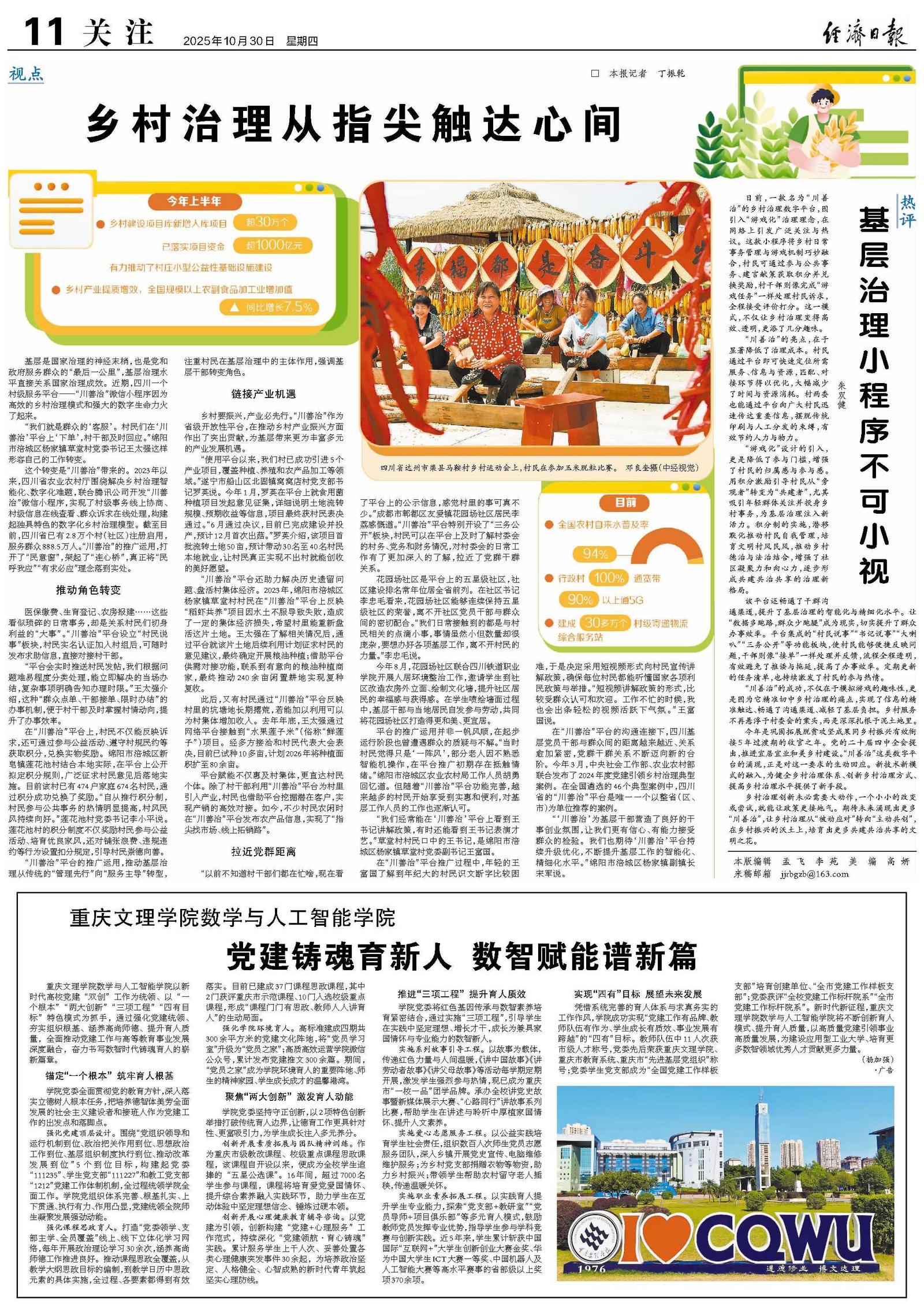 “我们就是群众的‘客服’。村民们在‘川善治’平台上‘下单’,村干部及时回应。”绵阳市涪城区杨家镇草堂村党委书记王太强这样形容自己的工作转变。