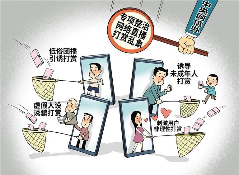 近日,为进一步加强网络直播打赏管理,中央网信办在全国范围内开展为期2个月的“清朗·整治网络直播打赏乱象”专项行动,聚焦娱乐性团播、私域直播等易滋生直播打赏乱象的重点领域,从严打击低俗团播引诱打赏等突出问题,营造良好直播生态。接下来,需多方协同配合行动推进。相关部门要从严惩处违规账号与平台,通过曝光典型案例发挥警示效应;直播平台须细化审核标准,建立健全打赏限额与消费提醒机制,畅通未成年人打赏退款与投诉举报渠道;网络主播应主动规范自身直播行为,杜绝低俗诱导、虚假人设等违规营利手段。从“流量导向”向“内容导向”转型,提升内容质量,构建长效治理机制,才是直播行业长久发展之道。 (时 锋)