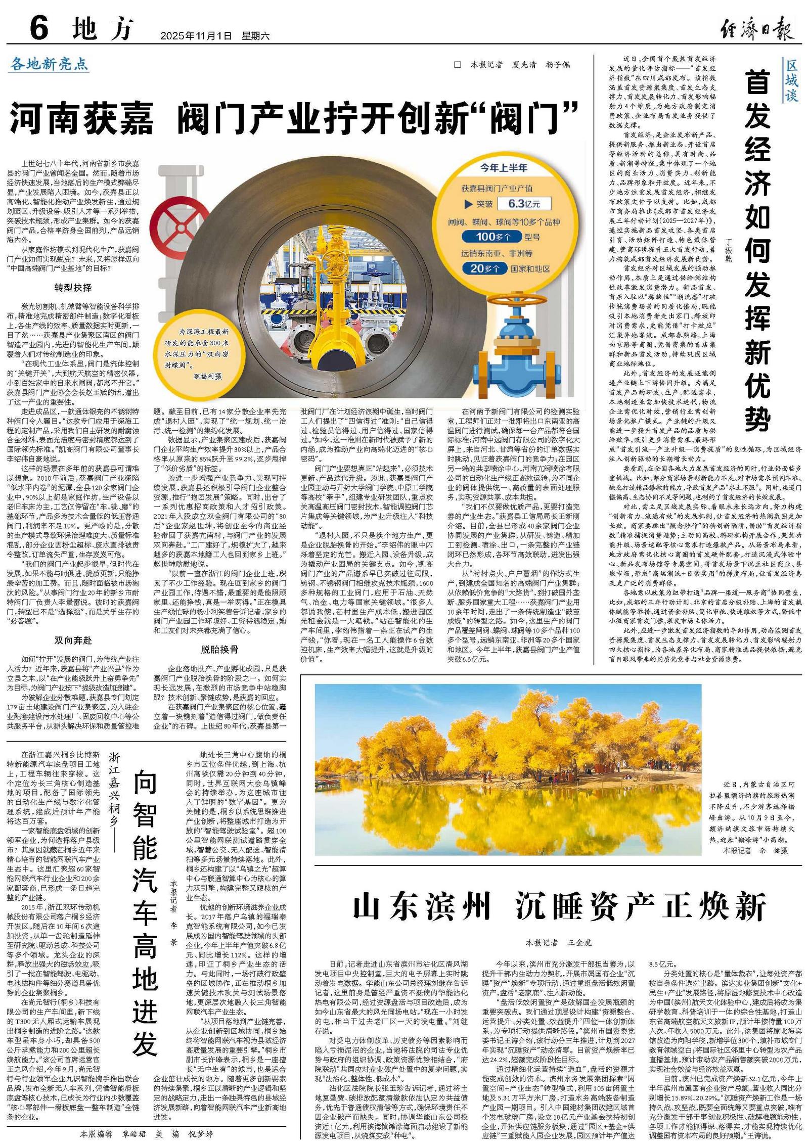 从“村村点火、户户冒烟”的作坊式生产,到建成全国知名的高端阀门产业集群;从依赖低价竞争的“大路货”,到打破国外垄断、服务国家重大工程……获嘉阀门产业用10余年时间,走出了一条传统制造业“破茧成蝶”的转型之路。如今,这里生产的阀门产品覆盖闸阀、蝶阀、球阀等10多个品种100多个型号,远销东南亚、非洲等20多个国家和地区。今年上半年,获嘉县阀门产业产值突破6.3亿元。