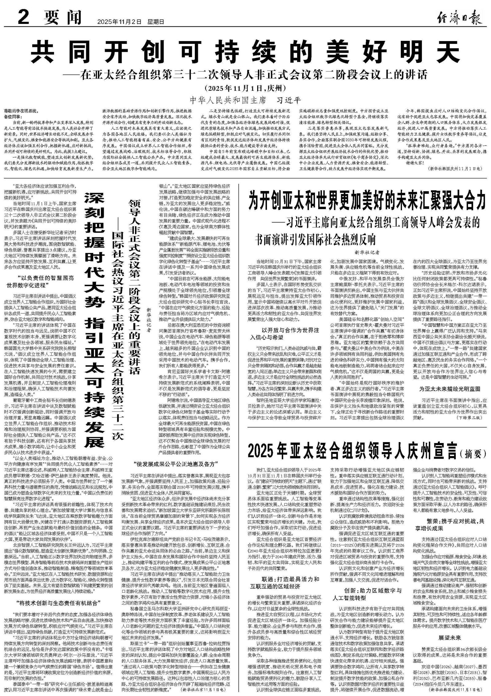 多国人士在接受新华社记者采访时表示,习近平主席讲话深刻把握时代发展大势和科技进步潮流,围绕数智赋能、绿色低碳、普惠共享提出3点建议,为亚太地区可持续发展擘画了清晰方向。未来各方应坚持开放发展、互利共赢,让更多合作成果惠及亚太地区人民。