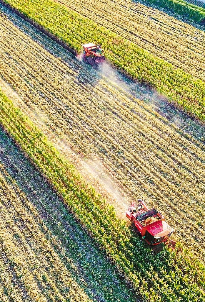 十一月一日,农民在位于黄河岸边的河南省洛阳市孟津区白鹤镇田间收获成熟的玉米。深秋时节,各地农民加紧收割,处处是喜人的秋日好“丰”景。黄政伟摄(新华社发)