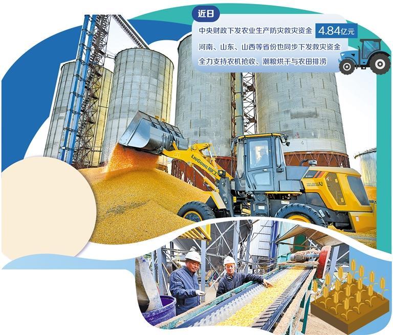 为积极应对连阴雨影响,中央财政紧急下发农业生产防灾救灾资金4.84亿元,河南、山东、山西等省份也同步下发救灾资金,全力支持农机抢收、潮粮烘干与农田排涝。