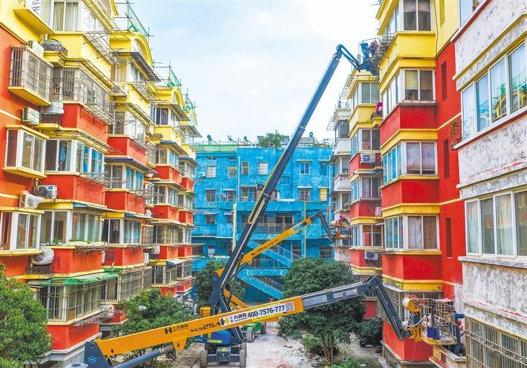 11月3日,安徽省芜湖市繁昌区繁阳镇,工人正在对老旧小区居民楼外墙面进行翻新作业。近年来,繁昌区积极有序推进老旧小区改造提升,不断增强群众的获得感、幸福感。