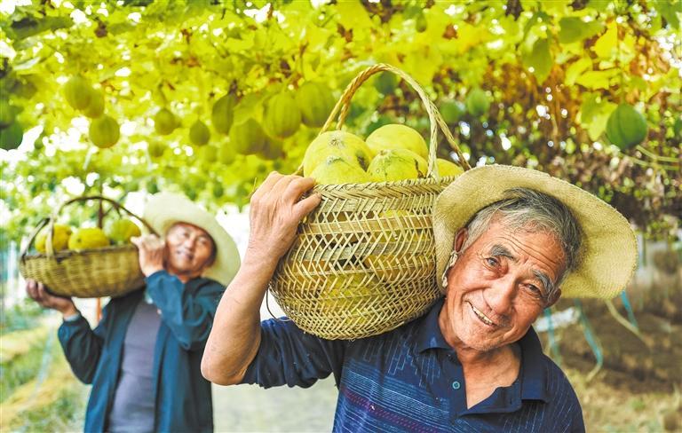 11月1日,安徽省马鞍山市博望区新市镇澄心村润丰源家庭农场,村民在搬运瓜蒌。瓜蒌果已成为当地群众增收致富果。 王文生摄(中经视觉)