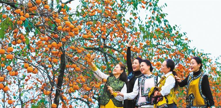 10月26日,游客在四川省乐山市五通桥区汤家坝村柿子园游玩。当地以柿子产业为依托,推动农文旅融合发展,助力乡村全面振兴。李华时摄(中经视觉)