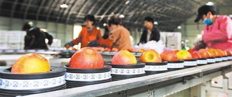 10月31日,山东省荣成市夏庄镇悦多果业苹果分拣车间,智能化分拣系统将苹果分为不同等级,精准高效。 王福东摄(中经视觉)