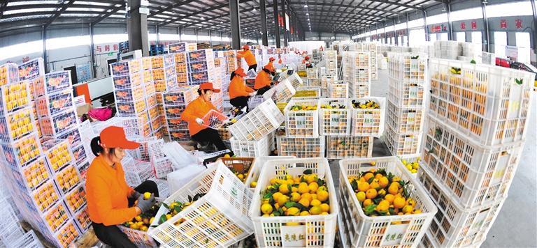 10月30日,湖北省宜昌市夷陵区星翔农产品专业合作联社社员在包装“夷陵红”柑橘。目前,夷陵柑橘种植面积31.55万亩,年产量86万吨,远销俄罗斯、马来西亚等20多个国家和地区。 张国荣摄(中经视觉)