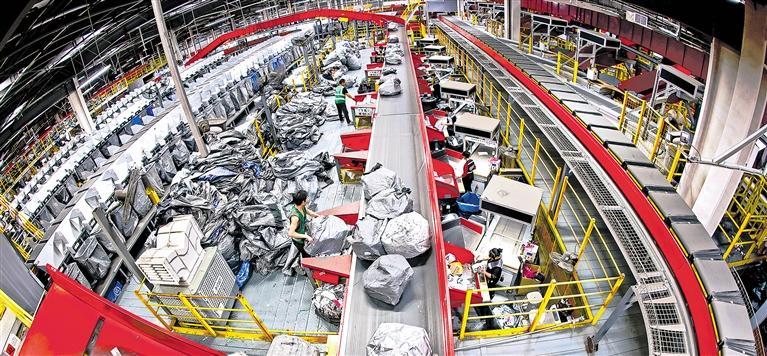 11月5日,顺丰速运浙江台州中转中心,工作人员在自动化流水线上分拣快递包裹,全力保障快件转运效率,确保“双十一”期间寄递渠道的畅通平稳。