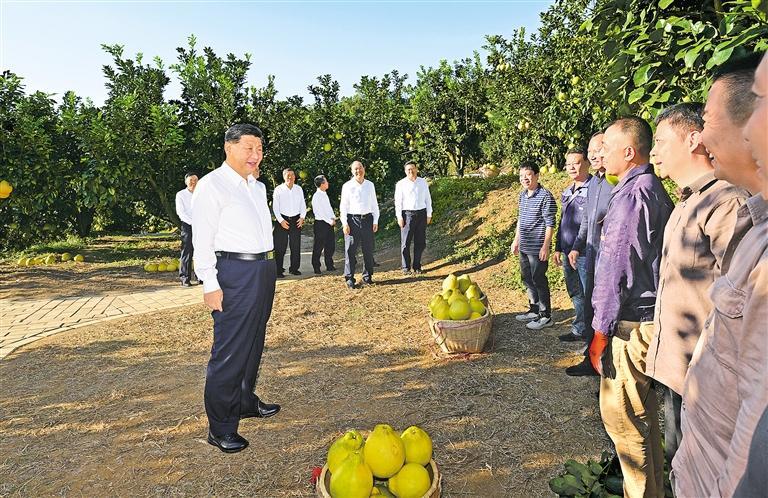 离开时,习近平同村民们亲切道别。他叮嘱,党和政府要继续加强对老区的政策扶持,老区广大干部群众要齐心协力、奋发图强。他祝愿乡亲们的日子过得像金柚一样又甜又美。