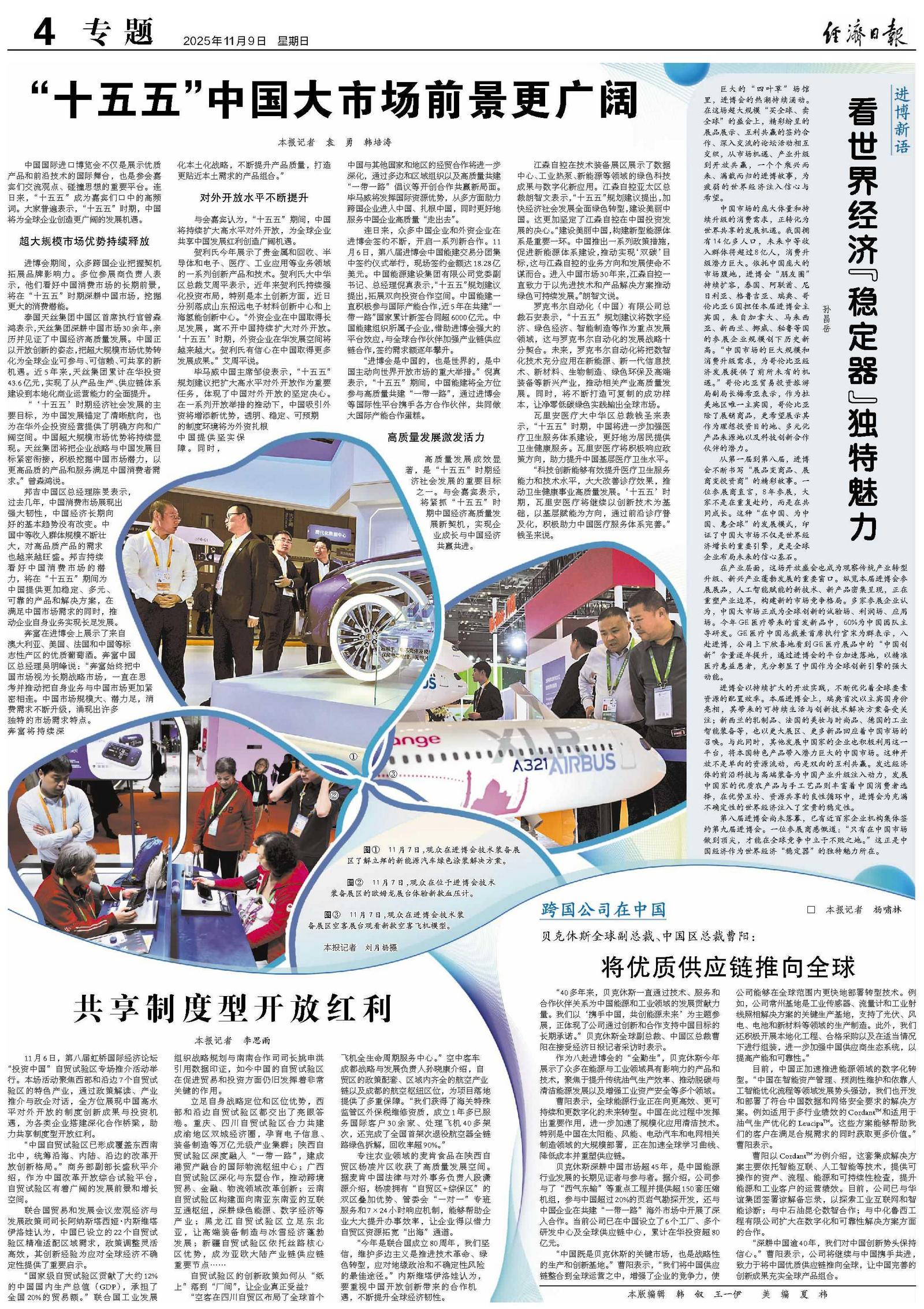 “40多年来,贝克休斯一直通过技术、服务和合作伙伴关系为中国能源和工业领域的发展贡献力量。我们以‘携手中国,共创能源未来’为主题参展,正体现了公司通过创新和合作支持中国目标的长期承诺。”贝克休斯全球副总裁、中国区总裁曹阳在接受经济日报记者采访时表示。