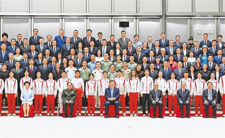 新华社广州11月9日电 在第十五届全国运动会即将开幕之际,中共中央总书记、国家主席、中央军委主席习近平9日下午在广州亲切接见全国群众体育先进单位、先进个人代表和全国体育系统先进集体、先进个人代表,向他们表示热烈祝贺,勉励他们奋力拼搏、再创佳绩,为建设体育强国作出新贡献。