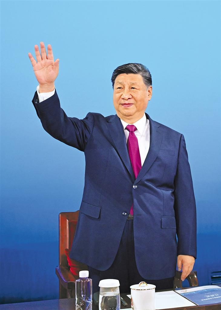11月9日晚,中共中央总书记、国家主席、中央军委主席习近平在广东省广州市出席中华人民共和国第十五届运动会开幕式并宣布运动会开幕。这是习近平在主席台上向大家挥手致意。新华社记者 燕 雁摄