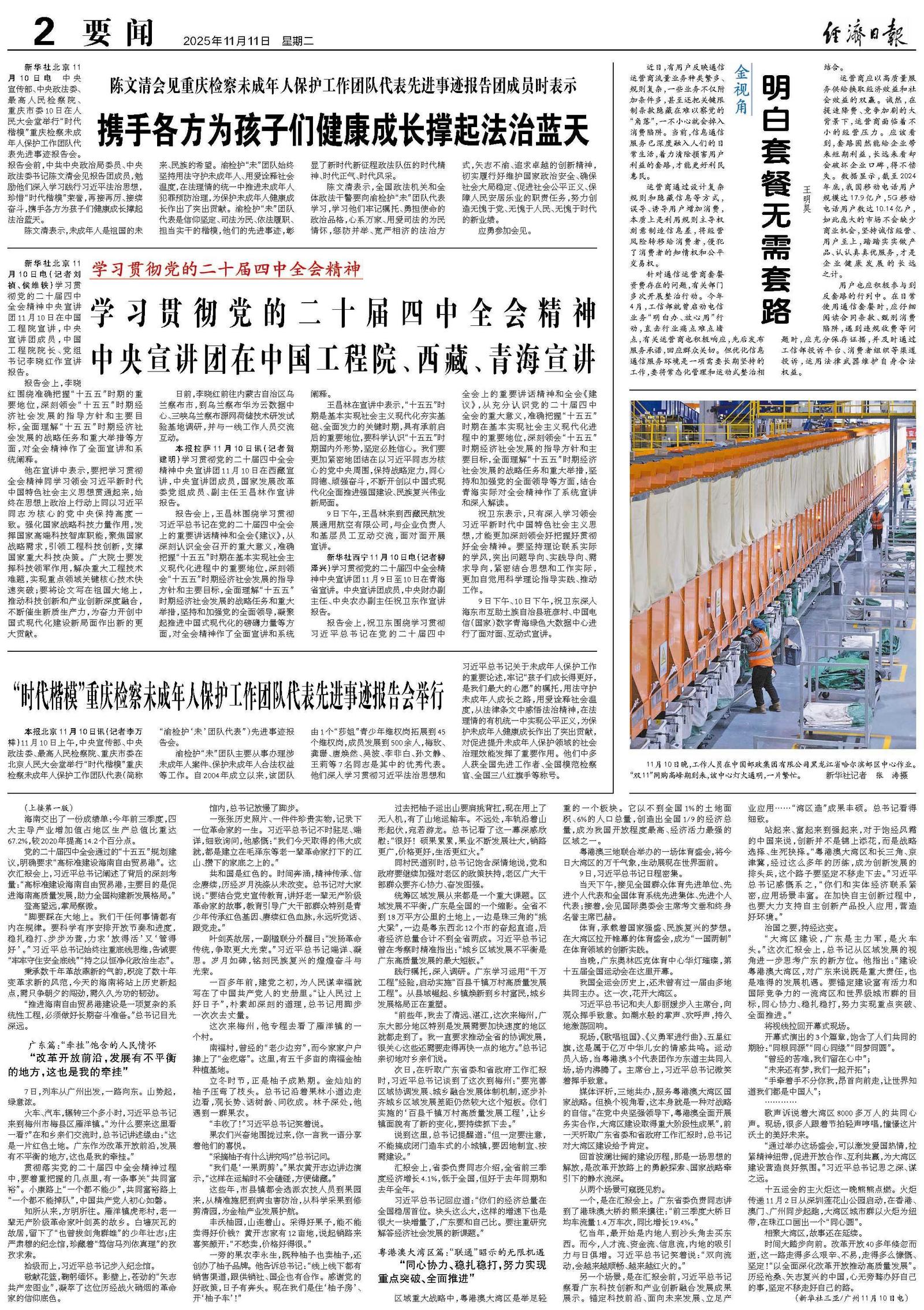 新华社北京11月10日电 中央宣传部、中央政法委、最高人民检察院、重庆市委10日在人民大会堂举行“时代楷模”重庆检察未成年人保护工作团队代表先进事迹报告会。报告会前,中共中央政治局委员、中央政法委书记陈文清会见报告团成员,勉励他们深入学习践行习近平法治思想,珍惜“时代楷模”荣誉,再接再厉、接续奋斗,携手各方为孩子们健康成长撑起法治蓝天。