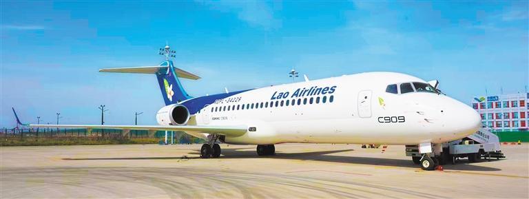 3月30日,中国商飞公司向老挝航空公司交付首架C909飞机。浦东新区以中国商飞上海飞机设计研究院为牵引,积极打造大飞机研发高地。 徐炳南摄(中经视觉)