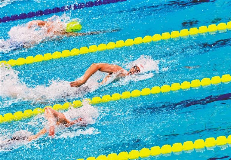 11月10日,十五运会男子4×100米自由泳接力决赛在深圳大运中心游泳馆进行。