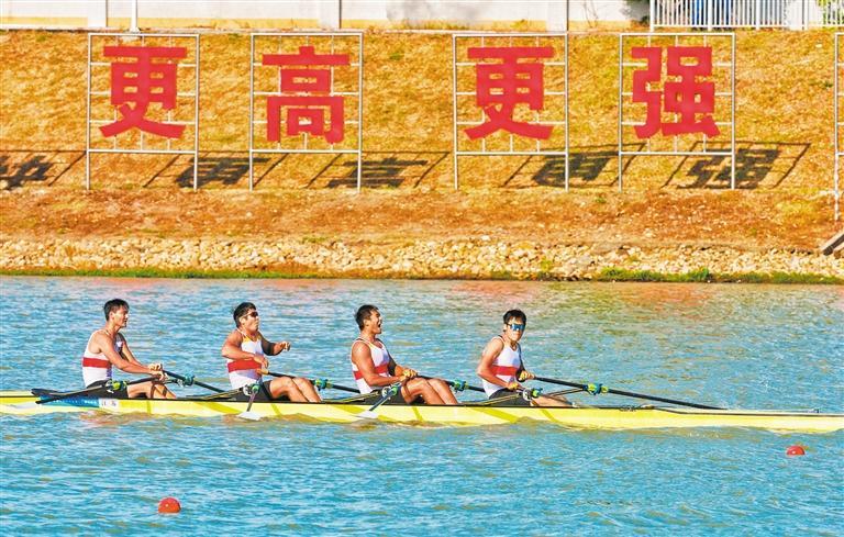 11月10日,十五运会赛艇项目决赛在广东国际划船中心展开角逐,江苏队在男子四人双桨决赛中夺得冠军,这是十五运会开幕式后产生的首枚金牌。