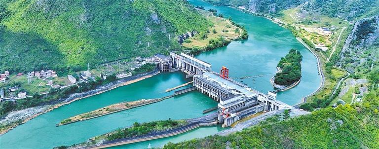 11月11日,广西来宾市忻城县红渡镇乐滩水电站,泄水闸坝、发电厂房与库区山水相映,构成一幅壮美画卷。今年前10个月,乐滩水电站累计发电量26.06亿千瓦时,同比增长26.35%;年度上缴税费1.6亿元,同比增长18.17%。樊绍光摄(中经视觉)