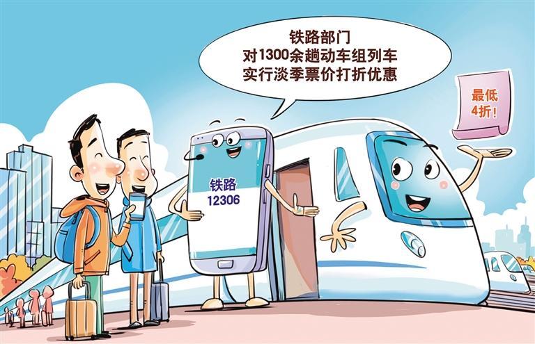 据国铁集团客运中心和相关铁路局集团公司消息,铁路部门结合淡季客流特点,优化调整部分动车组列车票价,近期对130余条线路的1300余趟动车组列车票价加大打折优惠力度,最低实行4折优惠。此次大规模票价调整,是铁路部门持续深化灵活折扣、有升有降的市场化票价机制的重要举措。通过价格杠杆优化运能利用,不仅降低了大众出行成本,也提升了铁路运输效率。接下来,政策落实要多维度发力。线路方面需建立动态调价机制,对非热门线路加大折扣力度;时段上可细分工作日与周末、早晚班次差异,如郑州局集团实行“周中周末”差异化定价。此外,针对不同群体,除学生、军人外,还可惠及务工人员、老年人等群体,通过技术手段实现“折上折”自动核验。(时 锋)
