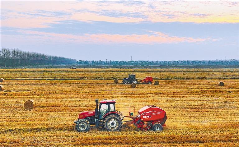 11月12日,江苏省泗洪县,农户们对水稻秸秆打捆离田,为种植小麦作准备。据了解,秸秆打捆离田、多元利用有利于改善环境、促农增收,实现生态效益和经济效益双赢。汪红兵摄(中经视觉)