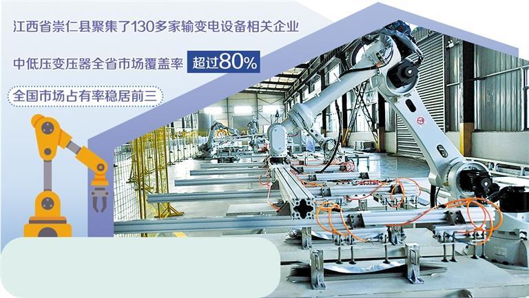 从“十八把榔头”起家,到如今建成超百亿产值的输变电产业集群,崇仁已成为全国重要的输变电设备生产基地、国家新型工业化产业示范基地。这里聚集了130多家相关企业,其中规上企业49家,中低压变压器的全省市场覆盖率超过80%、全国市场占有率稳居前三,新质生产力正持续重塑“机电之都”的核心竞争力。