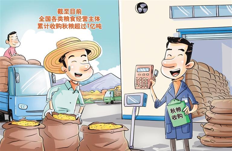 近日,国家粮食和物资储备局发布数据显示,秋粮旺季收购自10月上旬陆续展开,截至目前,全国各类粮食经营主体累计收购秋粮超过1亿吨,收购进展总体顺利,呈现出收购进度快、市场购销活、优质优价等特点。持续优化为农服务,让农民卖“舒心粮”“放心粮”,还需多方协同发力。政策落实需持续强化粮食市场监测预警,密切跟踪市场动态,统筹抓好市场化收购和政策性收储;为农服务要全面推广预约售粮,组织流动服务队提供上门检测等一站式服务,减少农民售粮损失。此外,要加强执法检查,严打压级压价等行为,及时发布市场行情,保障农民权益,维护公平交易环境。通过政策托底、服务提质与监管护航,让丰收切实转化为农民增收。(时 锋)