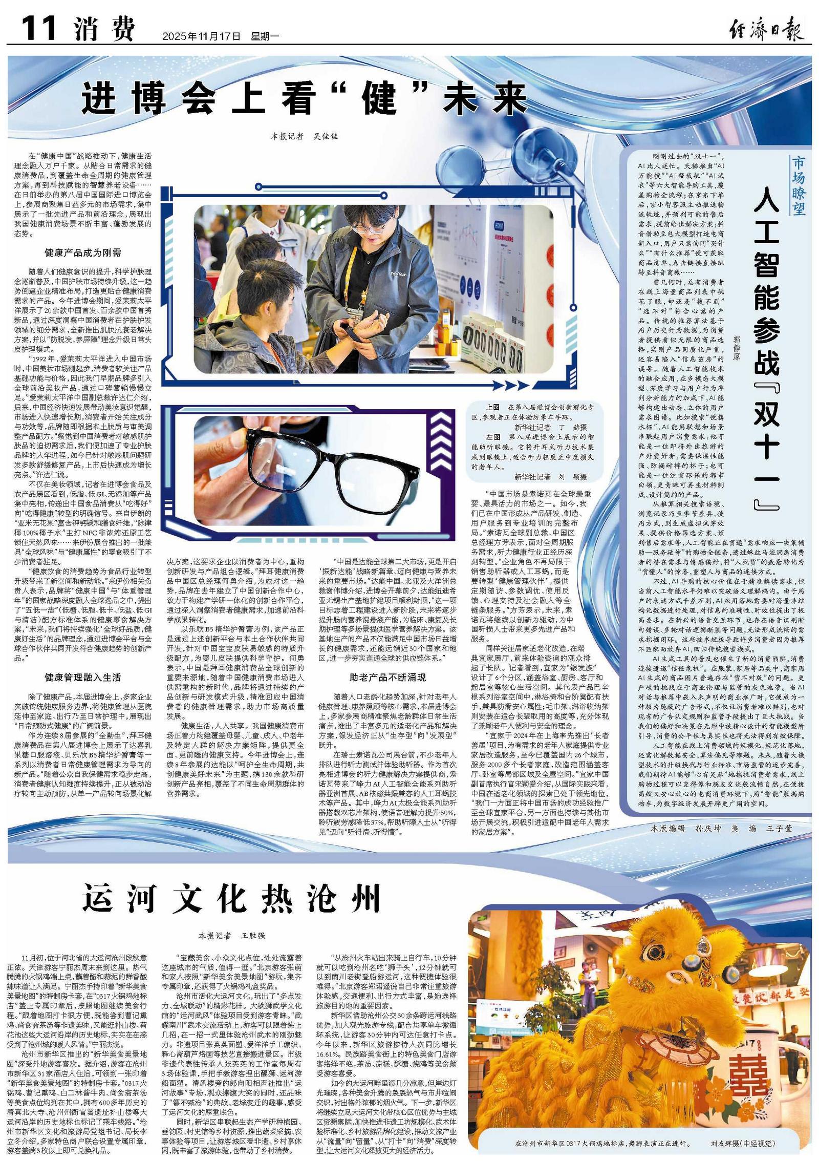 11月初,位于河北省的大运河沧州段秋意正浓。天津游客宁丽杰周末来到这里。热气腾腾的火锅鸡端上桌,蘸着醋和蒜泥的鲜香酸辣味道让人满足。宁丽杰手持印着“新华美食美景地图”的特制房卡套,在“0317火锅鸡地标店”盖上专属印章后,按照地图继续美食行程。“跟着地图打卡很方便,既能尝到曹记熏鸡、尚食斋茶汤等非遗美味,又能逛补山楼、荷花池这些大运河沿岸的历史地标,实实在在感受到了沧州城的暖人风情。”宁丽杰说。