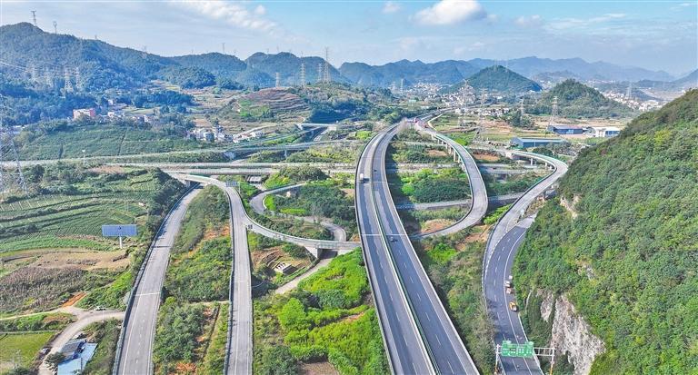 11月17日拍摄的贵州省黔西南州兴义市万屯镇磨盘山枢纽。近年来,当地大力推进交通基础设施建设,着力优化交通设施网络布局,提升交通运输服务能力,积极打造外联内畅、安全便捷的综合交通运输体系,促进沿线地方经济社会发展。