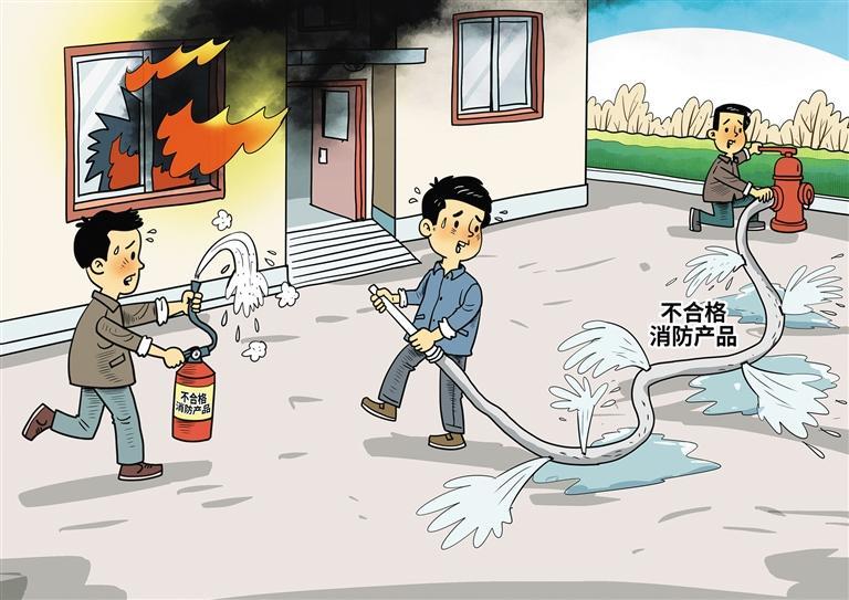 灭火器灭不了火苗、消防呼吸器过滤不了烟气毒性、消防水带一进水就破裂……不合格的消防器材不仅可能在关键时刻“掉链子”,本身也可能成为危险源。在近年来的抽查检验中,不合格消防产品时有“上榜”。消防产品质量事关群众生命财产安全,对此,应从源头管控、过程监管、末端治理、市场引导等方面加强部门协作,形成全流程全链条闭环监管。一旦发现认证、检验、生产、流通等环节中的违法违规行为,监管部门应从严惩处。在使用端,也要加强消费者消防安全意识教育,挤压劣质产品生存空间。(时 锋)