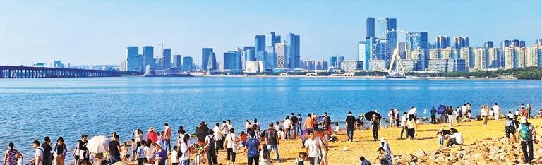 11月16日,游客在深圳市前海石公园游玩。深圳通过建设步行道、骑行道和增加儿童公园、运动设施等,进一步释放深圳滨海城市的活力与魅力。
