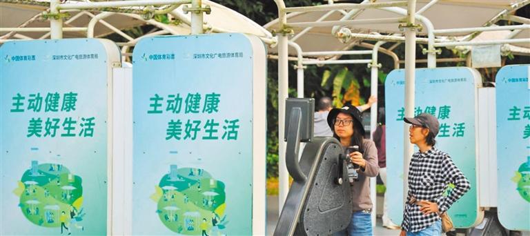 11月15日,市民在深圳莲花山公园体验智能健身设备。以十五运会为契机,深圳积极推动体育与全民健身深度融合,展现大湾区活力。
