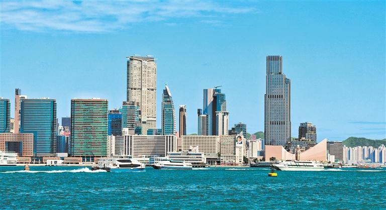 11月14日拍摄的香港维多利亚港。据香港旅游业界预计,十五运会将吸引超过10万人次旅客来港,带动餐饮、零售及酒店业消费热潮。