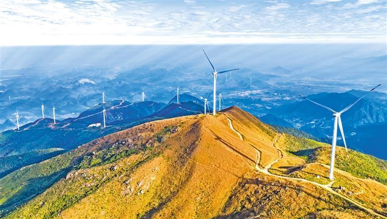 11月16日,位于湖南省永州市江华瑶族自治县姑婆山上的九恒风电场,数十台白色风力发电机组迎风旋转,将风能转换成电能。近年来,当地充分利用丰富的风力资源,大力发展风力发电,并带动相关产业发展。