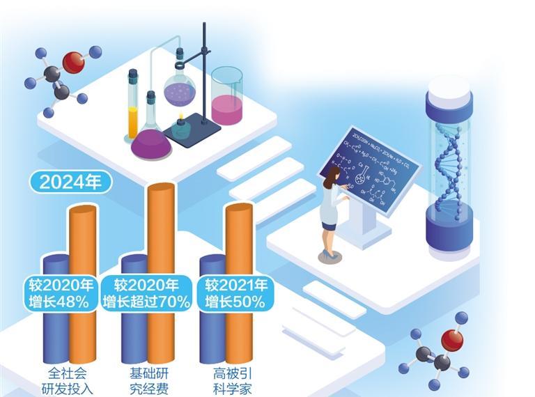 激活科技创新源头活水,稳步增加基础研究经费投入是前提。数据显示,2024年我国全社会研发投入超3.6万亿元,较2020年增长48%;其中,基础研究经费达到2497亿元,较2020年增长超过70%。