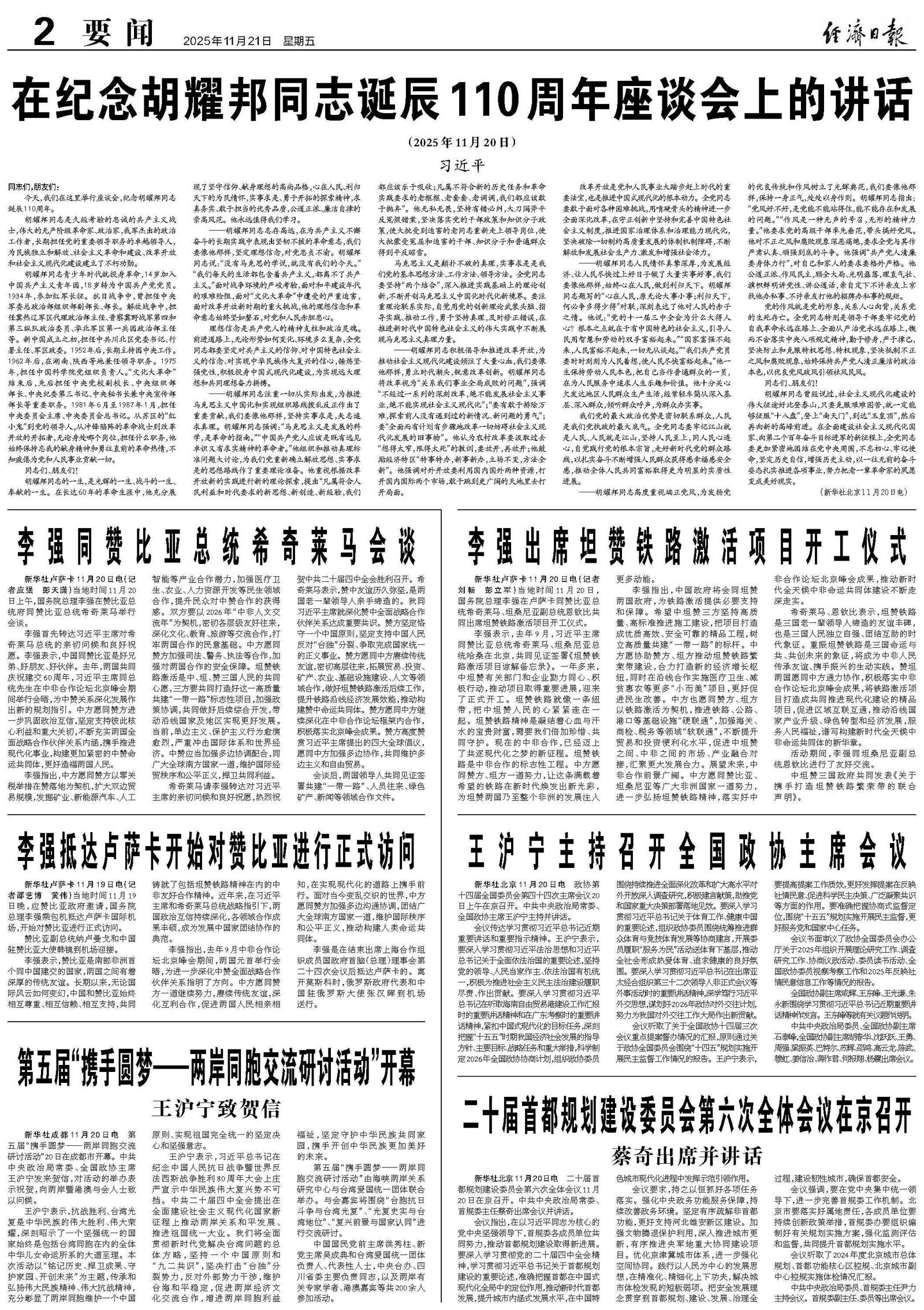 新华社卢萨卡11月20日电(记者刘畅 彭立军)当地时间11月20日,国务院总理李强在卢萨卡同赞比亚总统希奇莱马、坦桑尼亚副总统恩钦比共同出席坦赞铁路激活项目开工仪式。