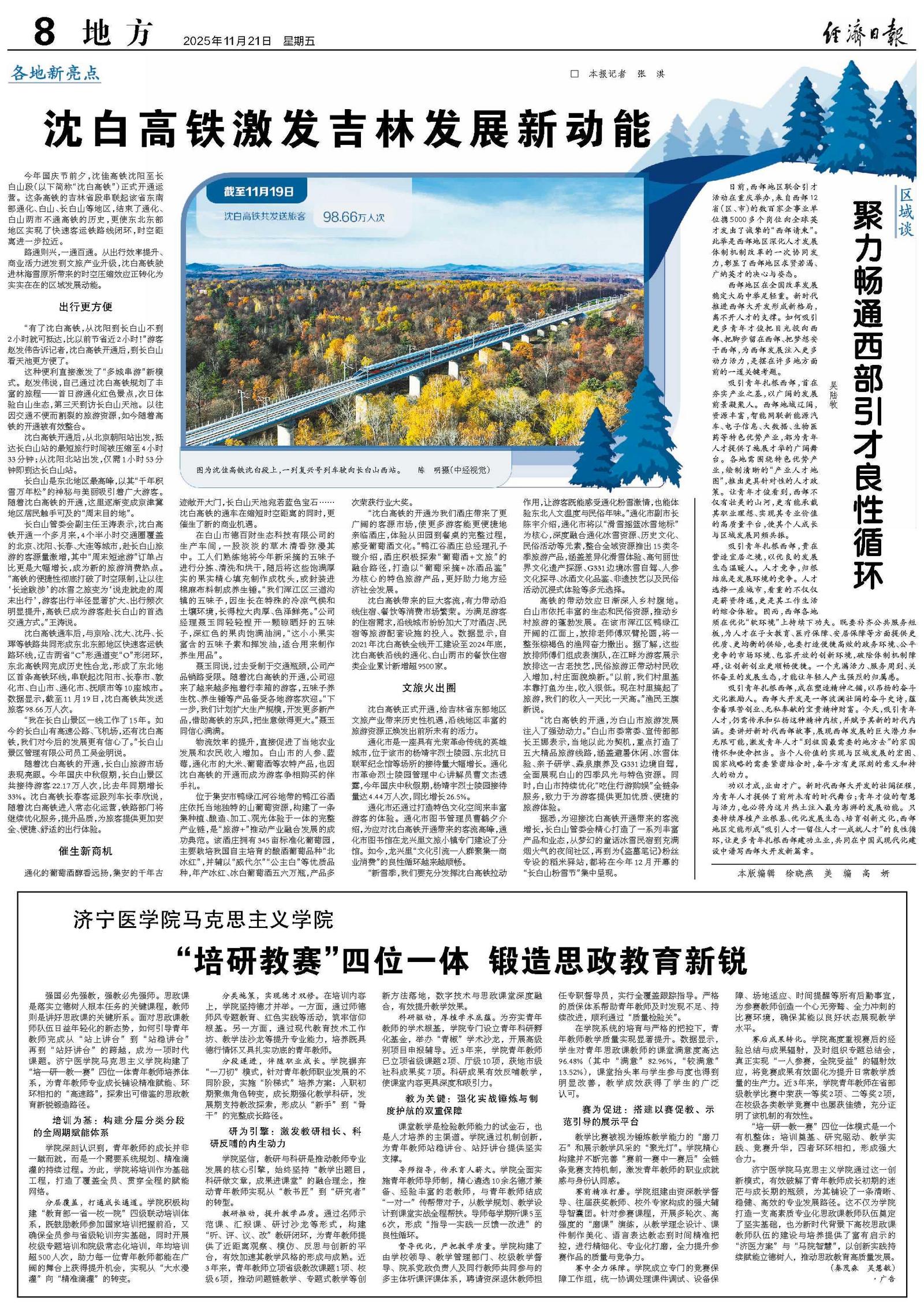 “沈白高铁的开通为我们酒庄带来了更广阔的客源市场,使更多游客能更便捷地亲临酒庄,体验从田园到餐桌的完整过程,感受葡萄酒文化。”鸭江谷酒庄总经理孔子璇介绍,酒庄积极探索“葡萄酒+文旅”的融合路径,打造以“葡萄采摘+冰酒品鉴”为核心的特色旅游产品,更好助力地方经济社会发展。
