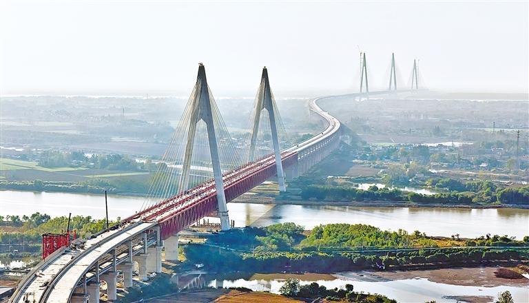 11月20日,安徽省巢湖市至马鞍山市城际铁路施工现场,首对500米长钢轨精准铺设到位,标志着巢马城际铁路全线铺轨工程全面启动,项目建设取得重大进展。