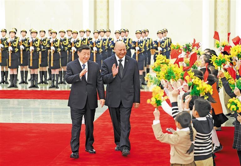 会见后,两国元首共同见证签署经贸、医疗、教育、发展等领域多份合作文件。