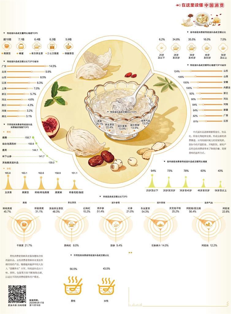 在传统观念里,冬季是养生滋补的重要节点,不少人习惯在这个季节里食用一碗热气腾腾的滋补汤来抵御寒冷、调养身体。如今,传统滋补消费正焕发新活力,成为人们追求健康生活的日常选择。