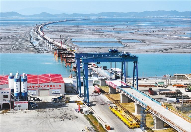 11月26日,北起福建漳州、南至广东汕头的漳汕高铁全线进入跨海大桥架梁施工阶段。该高铁是国家“八纵八横”高速铁路网沿海通道的重要组成部分,建成后将进一步完善区域路网结构,密切东南沿海地区交流联系。沈嘉鹏摄(中经视觉)