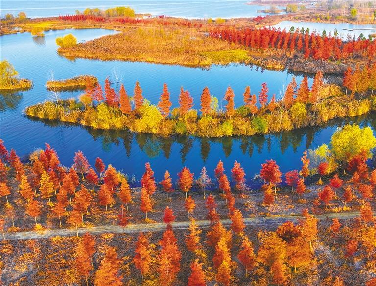 江苏省连云港市东海县石梁河水库北岸红杉林色彩斑斓。近年来,当地通过持续实施库区综合治理工程,有效保障了水库生态环境安全。李 娇摄(中经视觉)