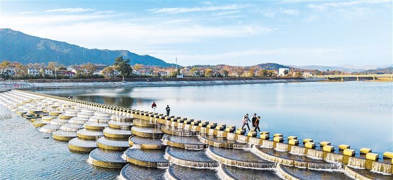11月30日,游客在湖北省黄冈市英山县杨柳湾镇东河鱼鳞坝赏景。近年来,当地以“一镇一特色”为抓手,将生态资源转化为农旅优势,蹚出融合发展新路。王 江摄(中经视觉)