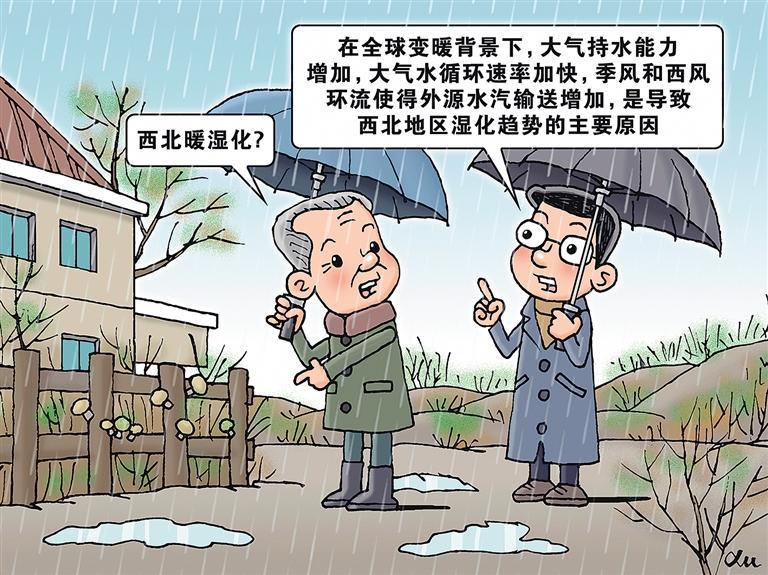 戈壁荒滩下了创纪录的连阴雨,沙漠腹地出现汹涌洪水……近年来,我国西北地区出现一些气候异常现象,引发人们的关注。在全球变暖背景下,大气持水能力增加,大气水循环速率加快,季风和西风环流使得外源水汽输送增加,以及高山区冰川、积雪融化和径流增加是主要原因。西北地区暖湿化是一把“双刃剑”,尽管带来一些风险,如增加当地农业病虫害风险、加剧河西走廊水资源补给的脆弱性等,但也给生态建设和农业带来新机遇。重塑安全认知、守好安全底线,应成为各行业应对暖湿化的当务之急。要将气候变化尤其是极端天气纳入灾害防御和安全管理方方面面,加强城市规划、重大工程、生态环境等适应气候变化的韧性。充分利用气候暖湿化的有利条件,因地制宜优化调整作物种类和种植结构,优化水资源调度和配置,加强高标准农田和韧性农田建设。(时 锋)